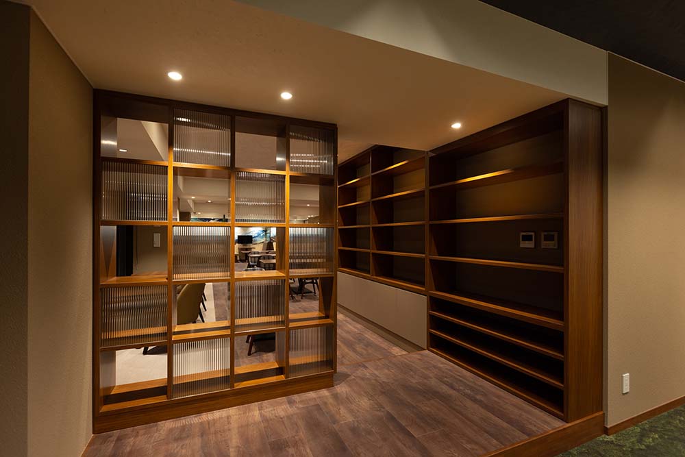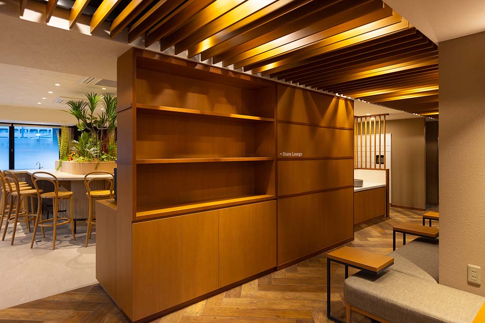 マンション一階部分のラウンジを設計士さんの図面とイメージに合わせ、忠実に製作いたしました。